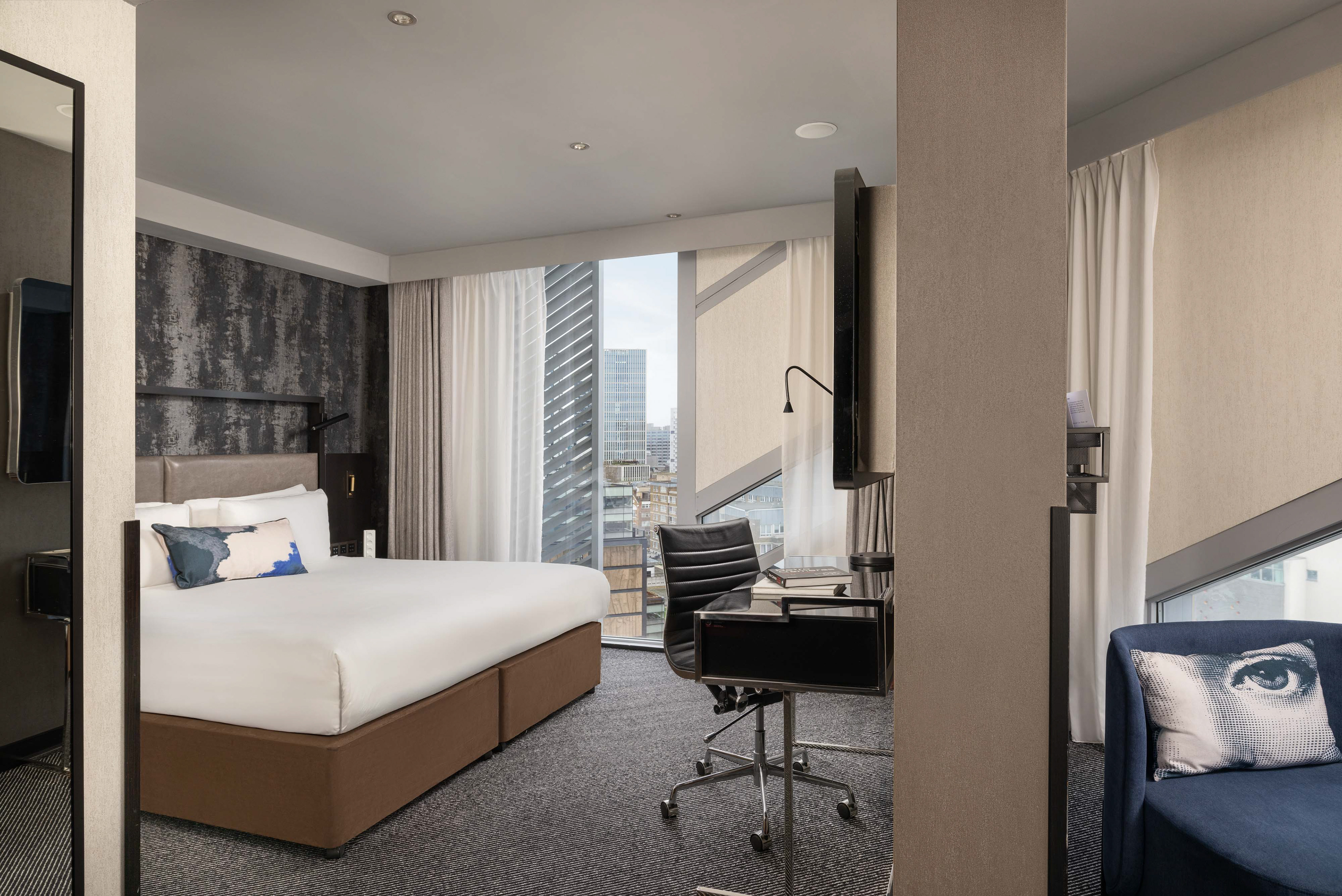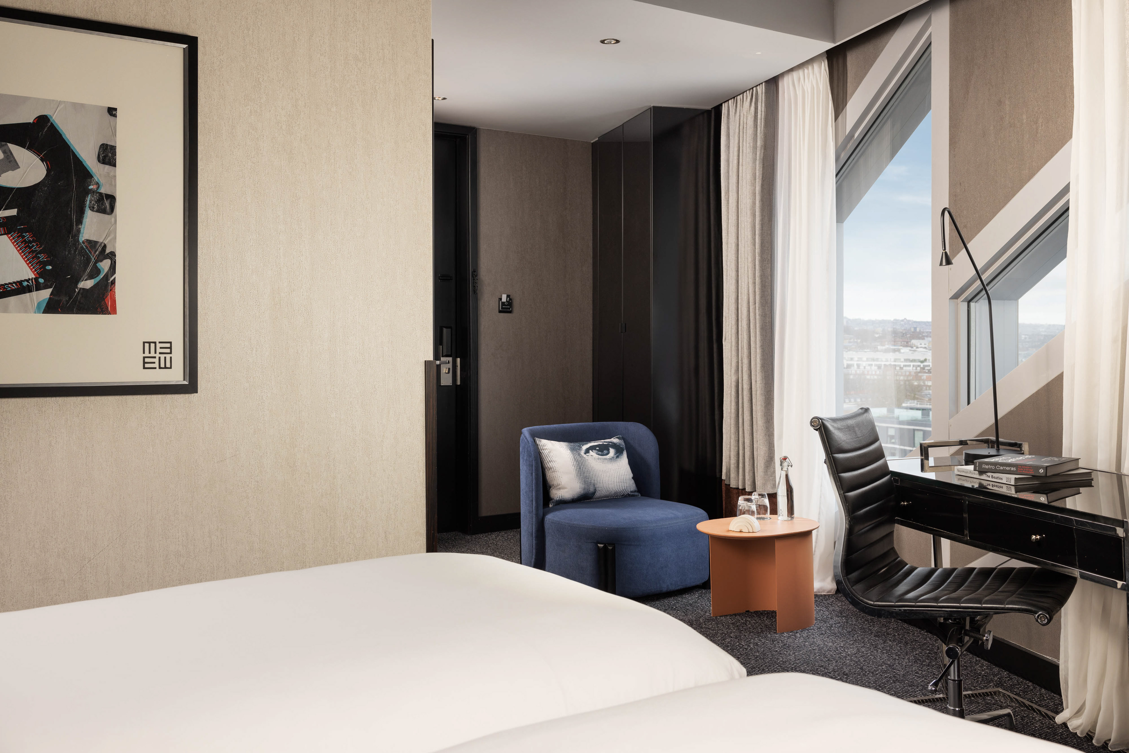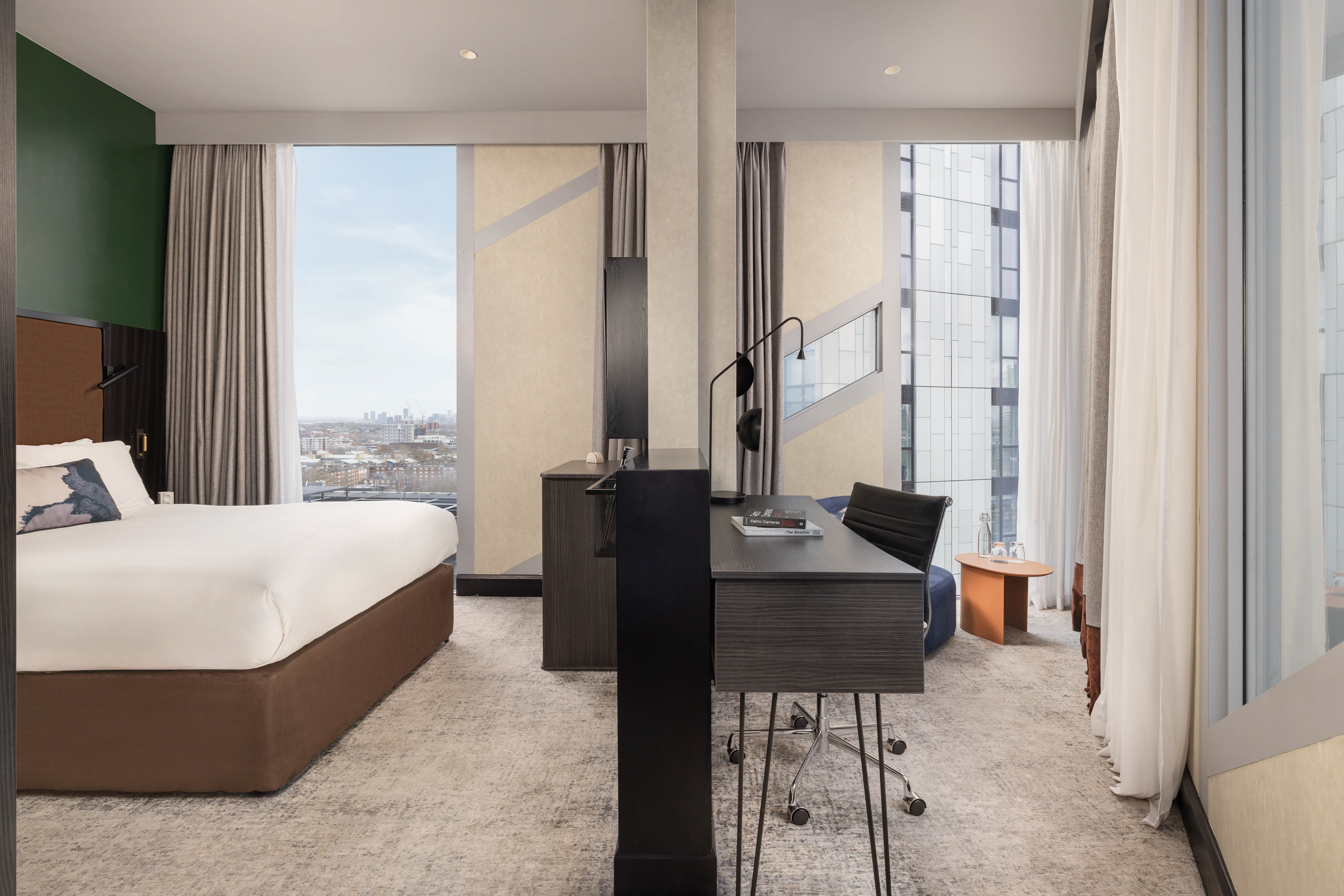 Montcalm East, is a Marriott Autograph collection hotel situated in City road's iconic diamond-shaped building. It draws inspiration through East London’s art studios as it tricks you in subtle optical illusions and visual surprises throughout.