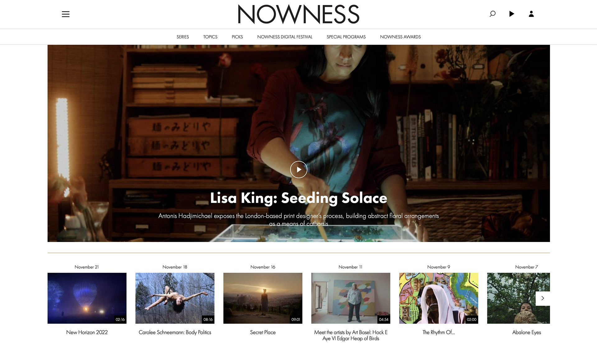 Extending the collaboration beyond the physical installation, I directed and edited Lisa King: Seeding Solace, a poetic study of her process, emotion, and the dialogue between art and design. The film was featured on NOWNESS’s homepage upon release.